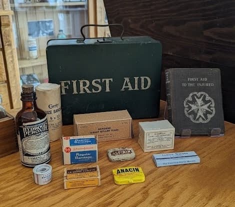 In the museum you will discover both in-house and commercial pharmaceuticals from the past 100+ years, mortars and pestles, scales and tablet presses, perfumes and cosmetics, and two ornate show globes from the early 1900’s.