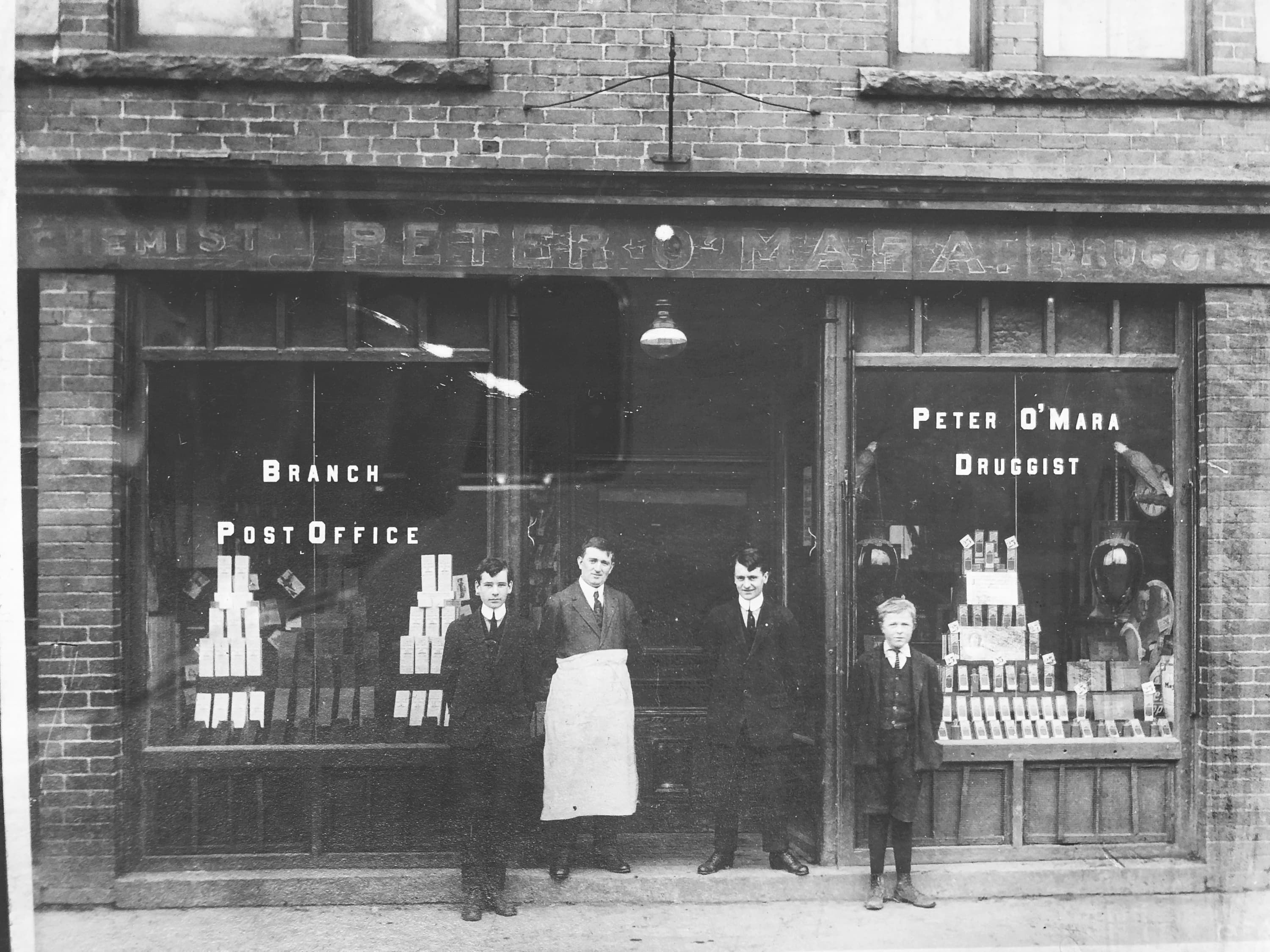 In 1899, West End Drug Store was established at 484-486 Water Street and was owned and operated by Lawrence Hannaford. It was purchased in 1905 by Peter O’Mara, but he eventually outgrew the location and decided to build a new drug store on vacant land close by.